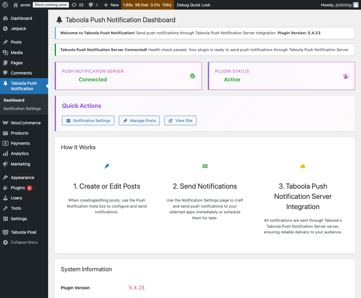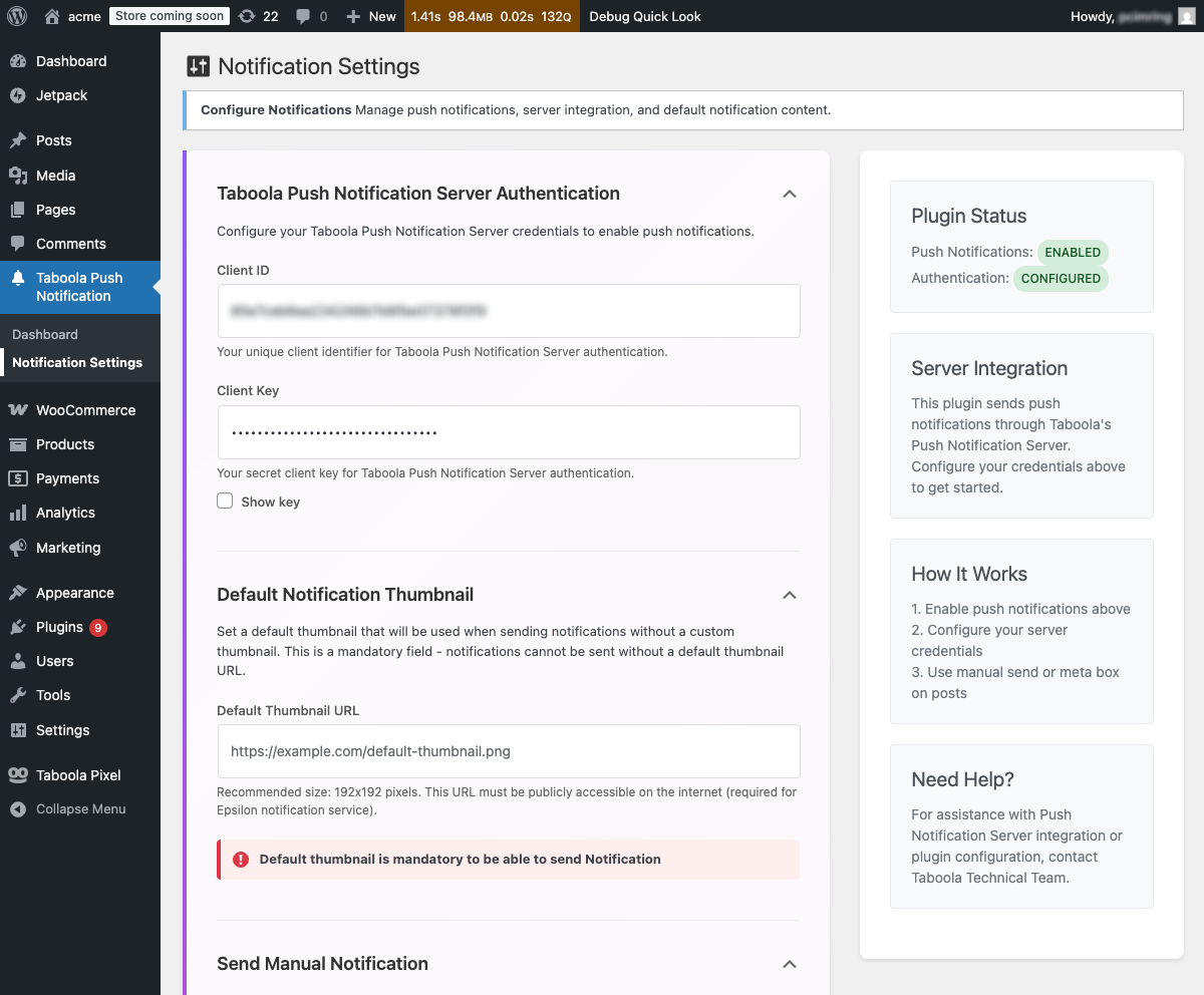 Well done! You have successfully configured the Taboola Push Notification plugin.