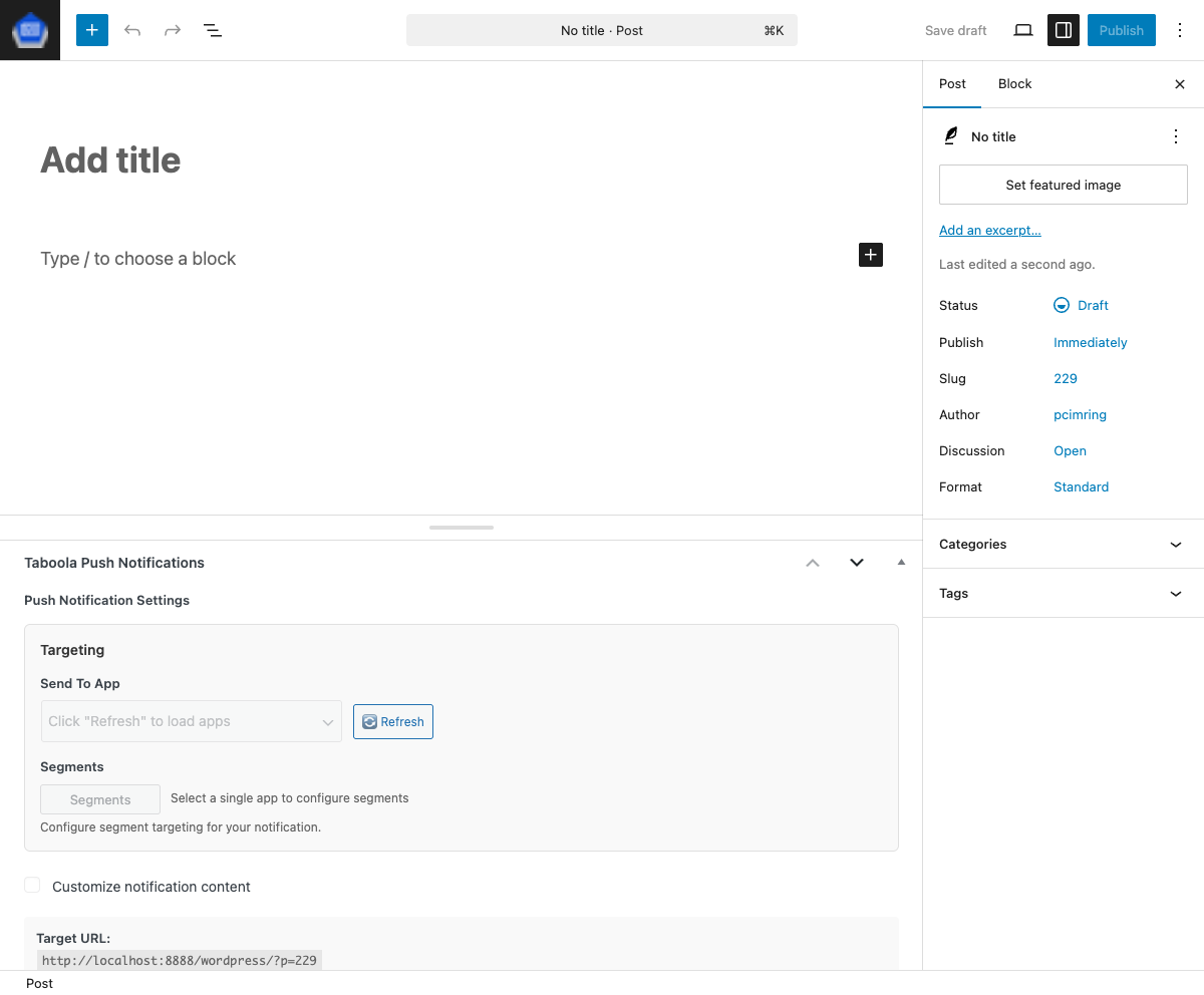 The Taboola Push Notification plugin enables you to send push notifications to your audience directly from your WordPress dashboard. Use it to notify subscribers about new content, breaking news, or scheduled campaigns.